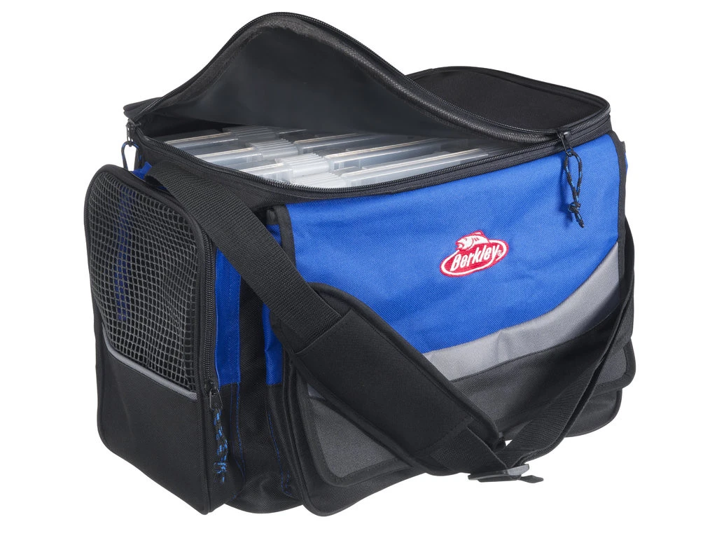 Diese sehr geräumige Ködertasche von Berkley wird inklusive 4 Zubehörboxen geliefert. Sie besitzt einen verstellbaren Schultergurt und drei Aufsatztaschen. Die Größe dieser Tasche beträgt ca. 47×21,5x31cm. Die Farbe ist Blau-Grau-Blau.
