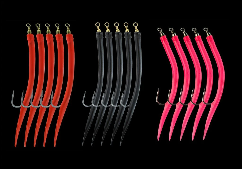Diese Gummi-Makks sind in drei Farben verfügbar. Es gibt sie in den Hakengrößen 6/0, 8/0, 10/0 und 12/0. In jeder Packung sind 5 Stück enthalten. Damit können Sie alte Maaks austauschen bzw. neue Vorfächer knüpfen oder Pilker tunen. Ausgestattet mit sehr scharfen und stabilen Haken sowie strapazierfähigem Gummi für das erfolgreiche Norwegenangeln.
