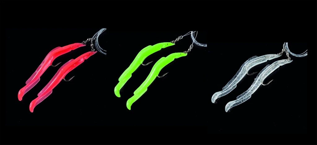 Dieses Sandaal Norway-Vorfach ist ein sehr fängiges System für Norwegen. Es ist verfügbar in attraktiven Farben. Seine sehr gute Beweglichkeit machen diesen Köder so beliebt. Er ist fachmännisch gebunden mit hochwertigen Komponenten versehen. Die Haken haben die Gr. 8/0 und der Vorfach-Durchmesser beträgt 0,80 mm bei einer Länge von ca. 100 cm.