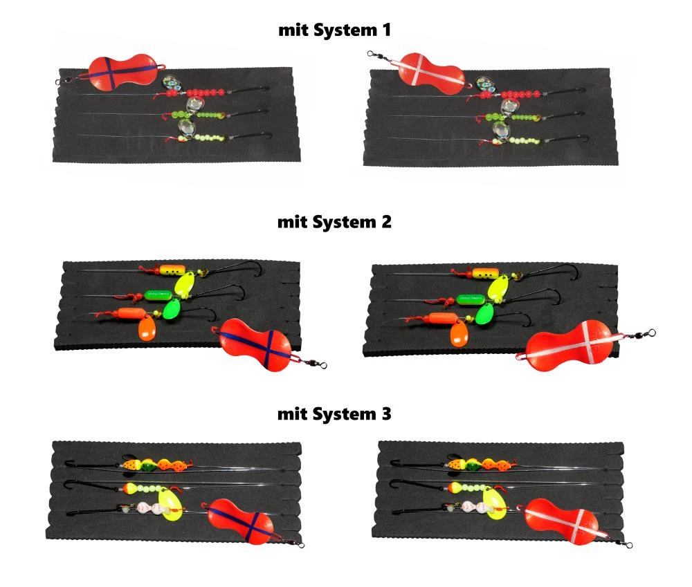 - Enthält je 3 Systeme + 1 Flounder-Spoon