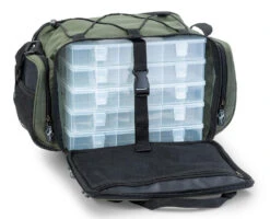 Die Angeltasche wird mit 5 Köder- und Zubehörboxen geliefert. Somit lassen sich eine Menge an Angelzubhör wie Kunstköder, Wirbel, Haken oder Jigs verstauen. Sehr praktisch sind auch ihre zusätzlichen Außen- und Netztaschen. Auch diese Tasche ist rundum gepolstert.