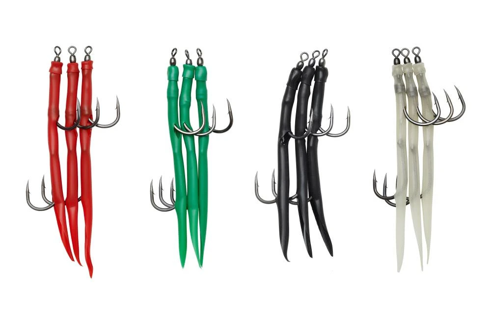 Werden Sie Profi! Dieser Doppel-Gummimakk wurde seit Jahren in Skandinavien handmontiert. Nun, mit einer perfekt maschinell erstellten Variante können Sie sogar die Profis übertrumpfen. Wirkt Wunder auf Dorsch, Köhler, Pollack und sogar Heilbutt, wenn Sie einen kleinen Köhler oder Hering auf den untersten Haken stecken. Absolut tödlich!