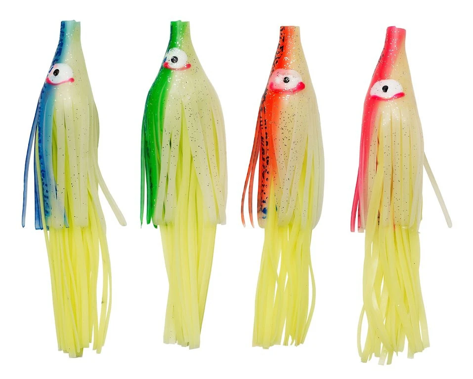 Dieser robuste Oktopus, mit seinen unterschiedlich langen Tentakeln, hat einzigartige Eigenschaften, denen die Fische in der Tiefe nicht widerstehen können. Vier selbstleuchtende und heiße Farbkombinationen stehen zur Verfügung. Es stehen zwei Längen von 160mm und 200mm zur Verfügung.