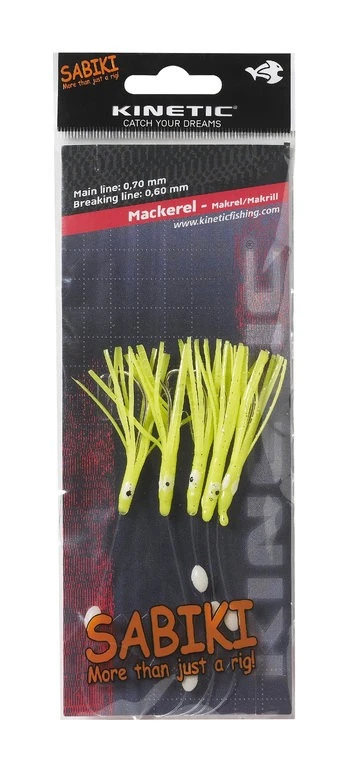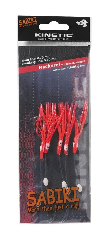 Dieses Vorfach ist perfekt für Makrele – und viel andere Salzwasser-Fische. Die kleinen Tintenfische sind so vielseitig, wie eine Montage nur sein kann! Mit Naturködern bestückt und am Grund angeboten, wird kein Fisch daran vorbeischwimmen. Starke #2/0 Haken und 0,70mm Hauptschnur mit 0,60mm Seitenarmen halten jeden Fisch sicher!
