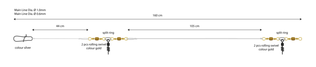 Das Basissystem, dass mit verschiedenen Ködern frei verwendet werden kann. Es hat eine 1,00 mm dicke Hauptschnur und eine Abrießstelle mit 0,6 mm Durchmesser. Kombiniert wird es mit Naturköder-Systemen. Am besten funktioniert es in 50m bis 100 m tiefen Gewässern. Gemacht ist das Grundvorfach für das Lumb-, Leng-, Seelachs- und Dorschangeln.