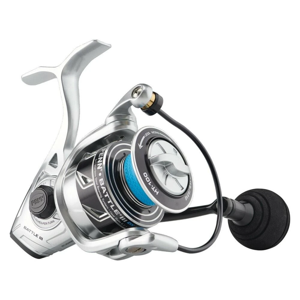 Die PENN® Battle® III ist jetzt noch stärker, geschmeidiger und haltbarer als je zuvor. Durch die Anpassung an unsere firmeneigene CNC Gear™ Technologie, das HT-100™ Carbon-Bremssystem und den Vollmetall-Körper hat der Battle III die Ausstattung und die Widerstandsfähigkeit, um die härtesten Situationen zu bewältigen. Die Modelle der DX-Serie wurden weiter verbessert. So hat Penn seine CNC-Getriebetechnologie mit Messing-Hauptzahnrädern verstärkt und das HT-Bremssystem verbessert. Für eine lineare Widerstandskurve wurrde ein zusätzliches Lager unter der Spule zusammen mit dem Wellenfederdesign angebracht. Alle Battle III DX Rollen haben einen großen EVA-Griffknopf, um noch besser die Kraft zu übertragen.