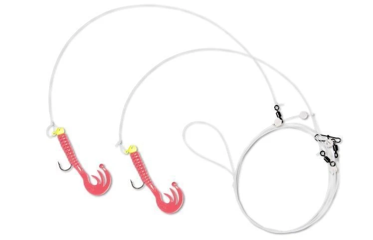 Dieses spezielle Vorfach ist für den Fang von Dorsch konzipert worden. Es gibt zwei verschiedene Ausführungen. Der Unterschied zwischen beiden Varianten besteht im Abstand der Seitenarme zueinander und dem Abstand zum Grundwirbel. Die erste Variante ist 50/50 geteilt, dass bedeutet der Abstand zwischen den beiden Seitenarmen und dem Grundwirbel beträgt 50cm. Bei der zweiten Variante 40/60 ist der Abstand zwischen den Seitenarmen 60cm und der Abstand zum Grundwirbel 40cm. Beide Vorfachvarianten besitzen eine 0,50mm starke Hauptschnur und die Seitenarme eine Stärke von 0,45mm. Die Tragkraft der Vorfächer ist mit 17kg angegeben. Es gibt vier verschiedene Farben, in denen die Twisterschwänze eingefärbt wurden. Die Twister mit Curly Tail haben eine Länge von 7,5cm und sind an einem 3,5g Trophy LOOky Jig-Kopf der Hakengröße 3/0 befestigt. Die Vorfächer haben eine Länge von 135cm und die Seitenarme sind 23cm lang.