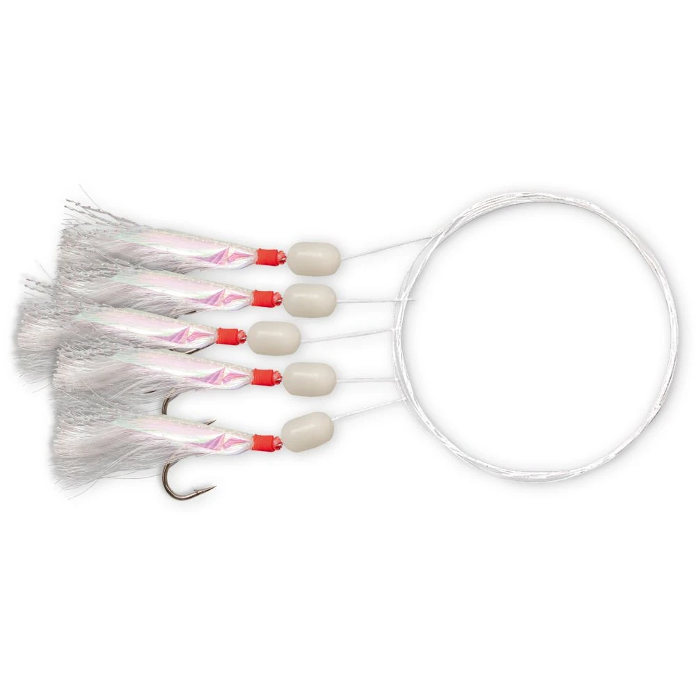 Beim Makrelenangeln kommt es auf das richtige Vorfach an. Das Holografix Rig vereint alle wichtigen Eigenschaften, damit der Fischeimer schnell gefüllt ist. Durch die holographischen Fäden, die der natürlichen Nahrung (tierischen Plankton) nachempfunden ist und der echten Fischhaut, gebunden auf extrem scharfen, stabilen Haken macht dieses Vorfach perfekt.